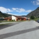 Nybygg og mellom eksisterande bygg. Opp-ned bygg på stålkonkstruksjon.